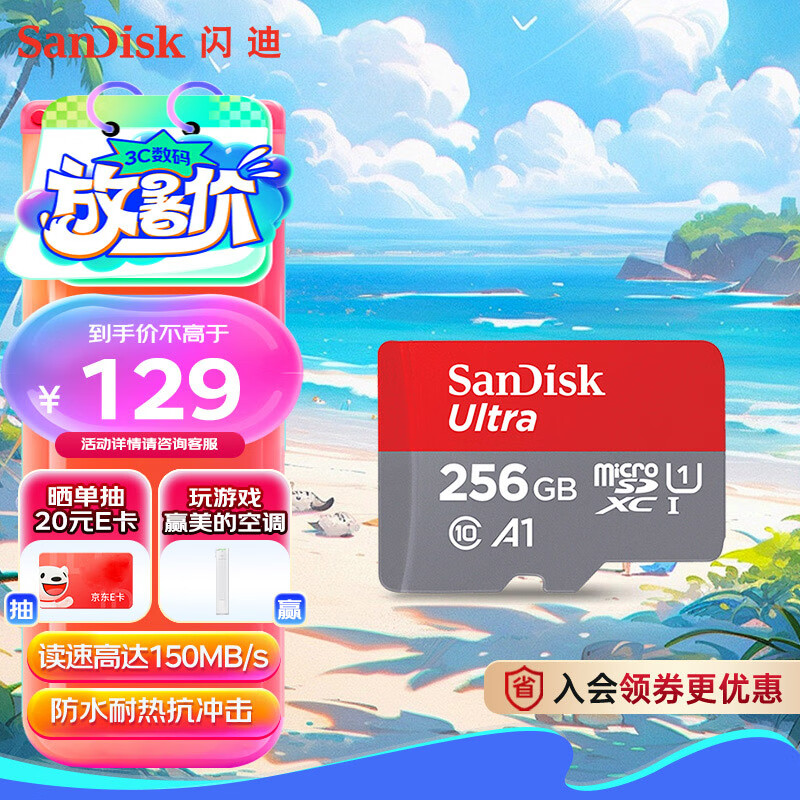 闪迪(SanDisk)256GB TF(MicroSD)内存卡 A1 U1 C10 高速移动版存储卡 读速150MB/s 手机平板游戏机内存卡价格:129.00元!