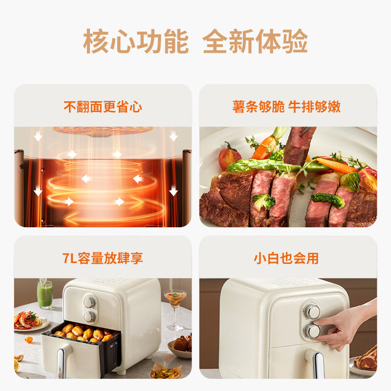 九阳(Joyoung)不用翻面 精准控温控时 蒸汽嫩炸空气炸锅 家用7L大容量 薯条机电炸锅 KL70-V591价格:259.00元!