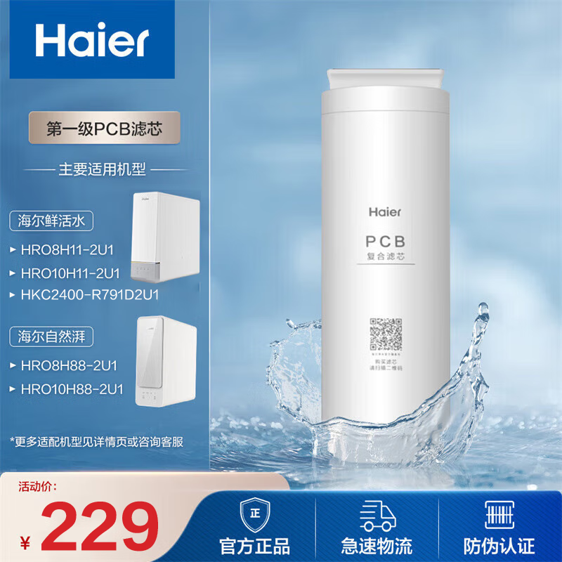 海尔(Haier)净水器滤芯HRO6H11/8H88/10H88-2U1/8H11/10H11/HKC2400-R791D2U1级 PCB滤芯价格:229.00元!