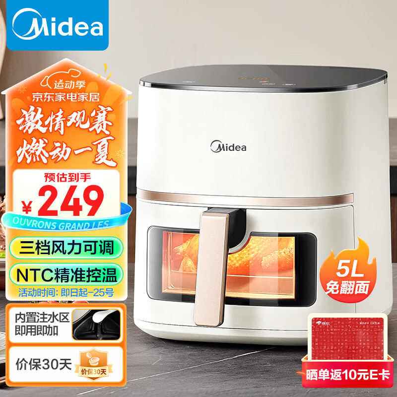 美的(Midea)空气炸锅 不用翻面 家用全自动 可视 实用大容量 炸烤箱一体机 智能触控 金属内腔 5L KZC5089价格:249.00元!