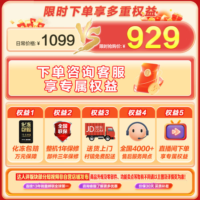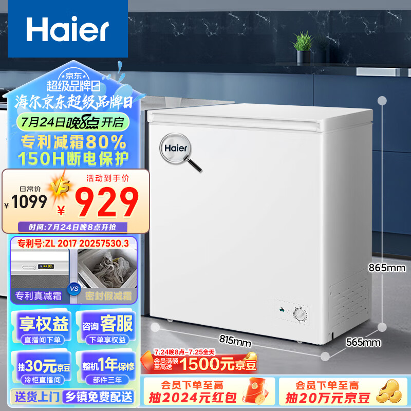 海尔(Haier)200升低霜小冰柜家用商用冷藏柜冷冻柜两用冰柜小型租房用小冰箱小型冷柜BC/BD-200GHDT以旧换新价格:929.00元!