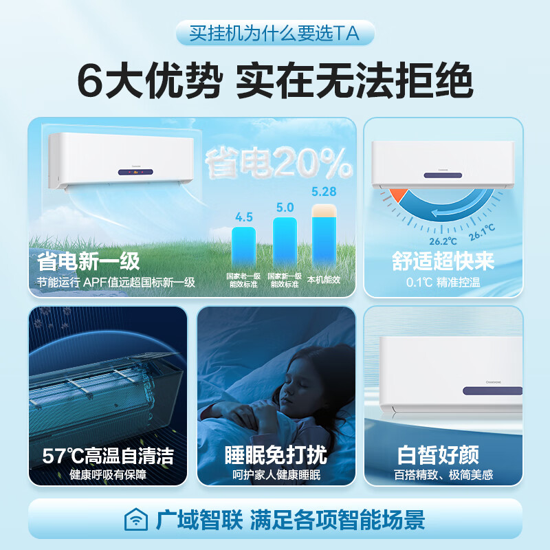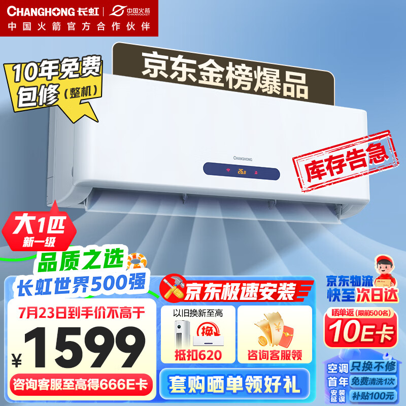 长虹(CHANGHONG)大1匹新一级能效 变频冷暖省电京小宅 智能卧室空调挂机 京东小家 KFR-26GW/ZDHQW1+R1以旧换新价格:1599.00元!