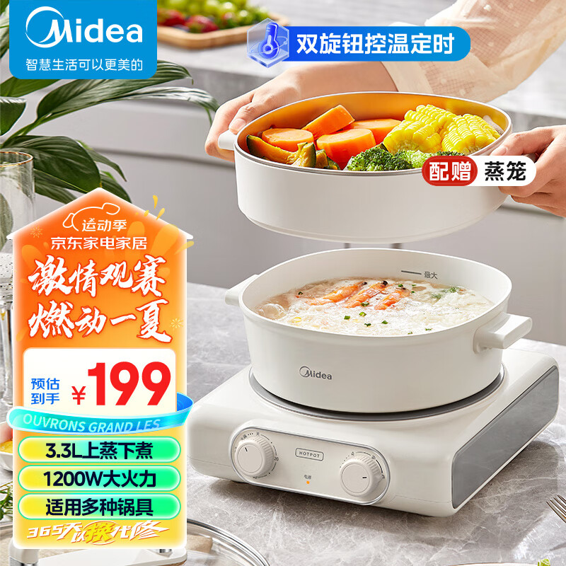 美的(Midea)电煮锅 电火锅 电炒锅 电蒸锅 火锅锅 分体式 家用多功能 电热锅 多用途锅 四季小嗨锅 DHC232312价格:199.00元!