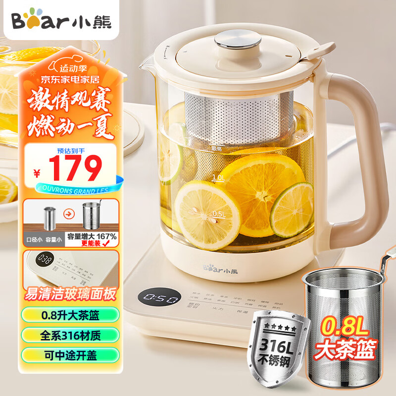 小熊(Bear)养生壶 煮茶壶 1.5L家用炖煮一体花茶壶煮茶器316L不锈钢加大滤网玻璃面板YSH-E15Z1 恒温电热水壶价格:179.00元!