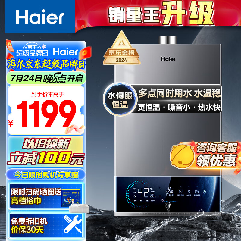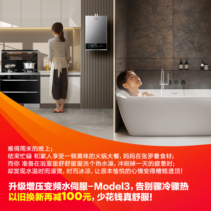 海尔(Haier)16升燃气热水器天然气 增压变频水伺服 ECO节能 低水压启动 JSQ30-16MODEL3DPWCU1【以旧换新】价格:1299.00元!