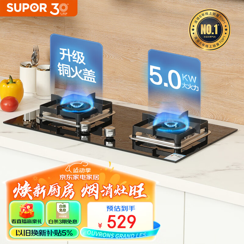 苏泊尔(SUPOR)燃气灶双灶家用 天然气灶双灶具 5.0kW家用猛火灶 钢化玻璃双灶台嵌两用全进风 Q5天价格:529.00元!