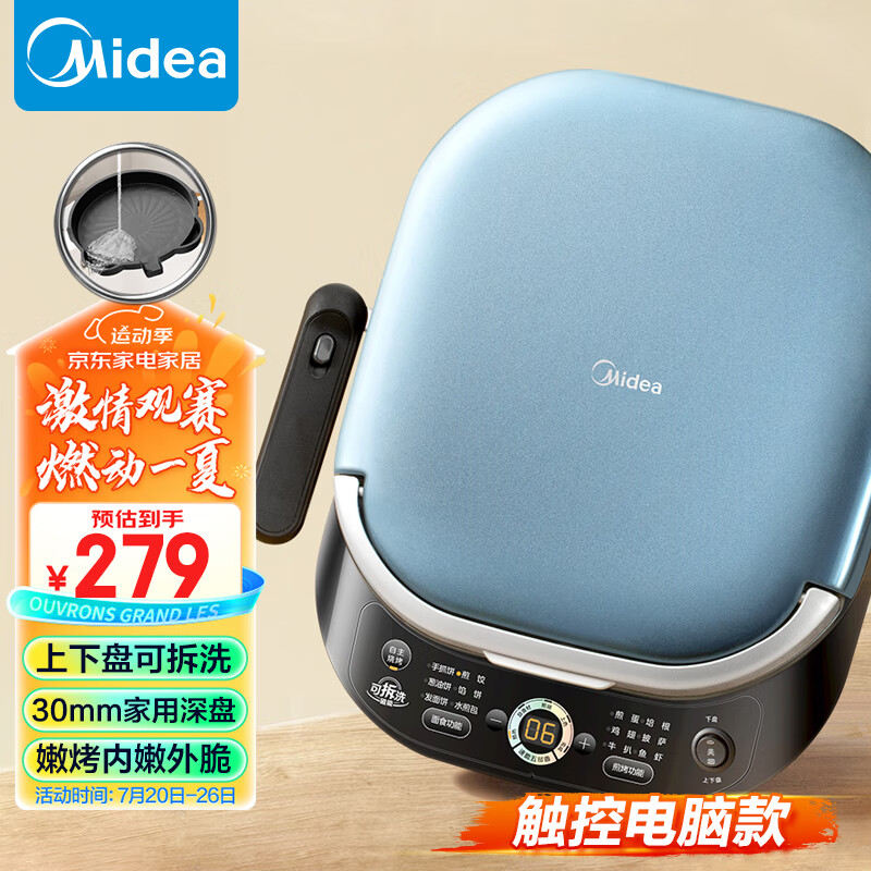 美的(Midea)电饼铛 上下盘可拆洗 家用双面加热加深 大尺寸烙饼锅煎饼三明治早餐机蒸汽煎烤盘 电饼档JKS3072价格:279.00元!