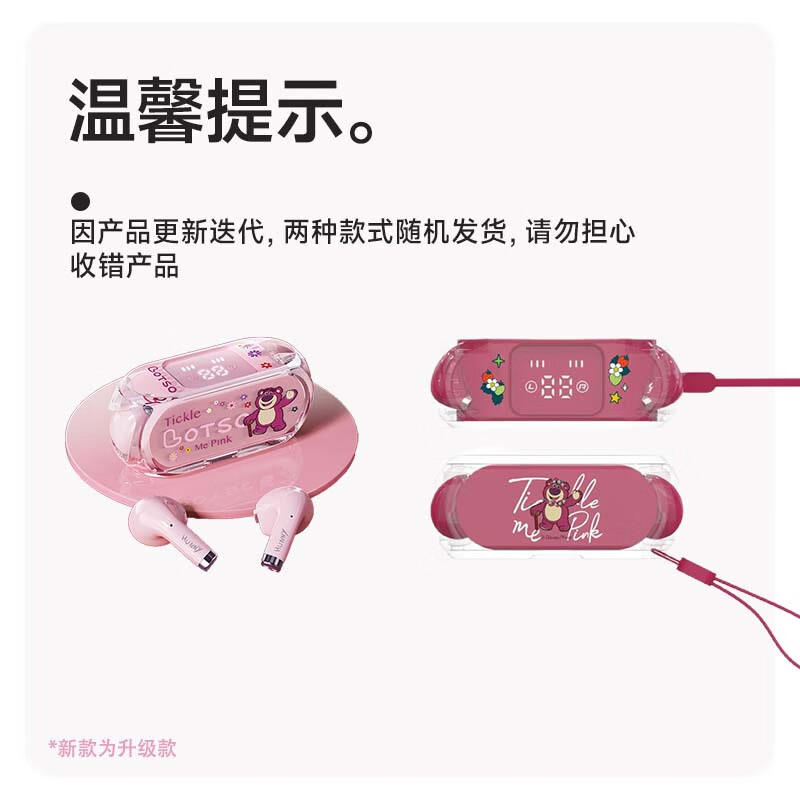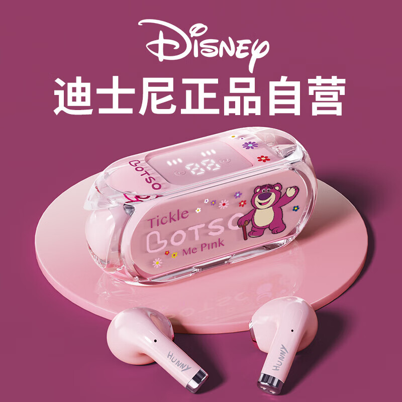 迪士尼(DISNEY)J13蓝牙耳机透明真无线半入耳式运动跑步LED数显音乐降噪游戏情侣礼物适用华为苹果【粉色草莓熊】价格:109.00元!