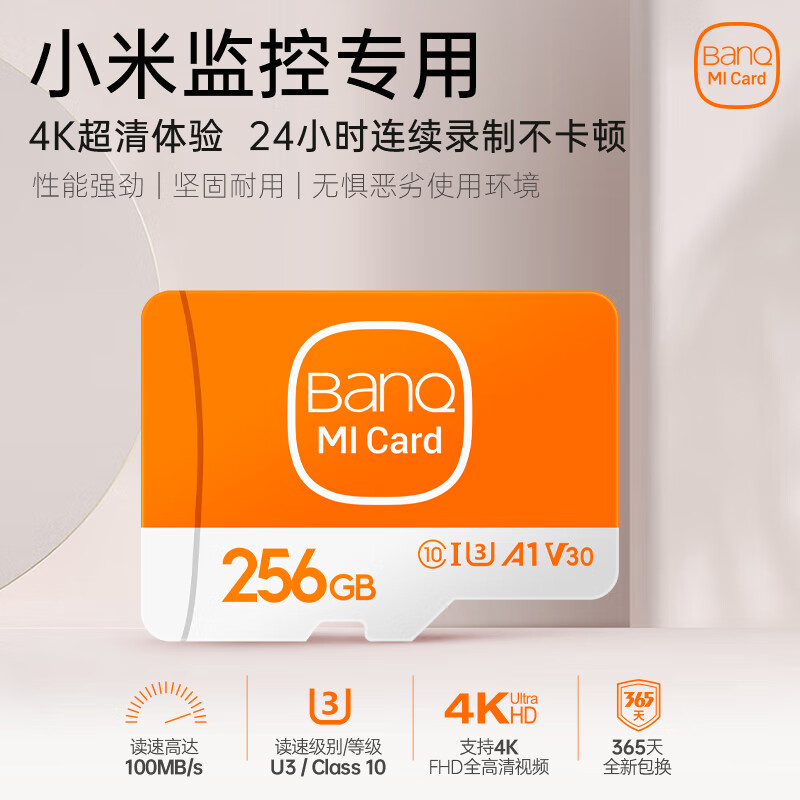 banq 256GB TF(MicroSD)存储卡 A1 U3 V30 4K 小米监控摄像头专用卡&行车记录仪内存卡 高速耐用Pro价格:137.00元!