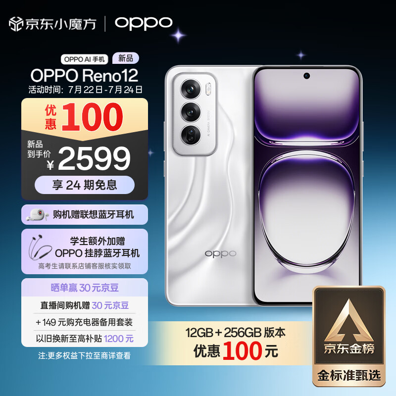 OPPO Reno12 超美小直屏 安卓Live图 天玑旗舰芯 12GB+256GB 千禧银 游戏智能 新款 AI影像5G拍照手机价格:2699.00元!
