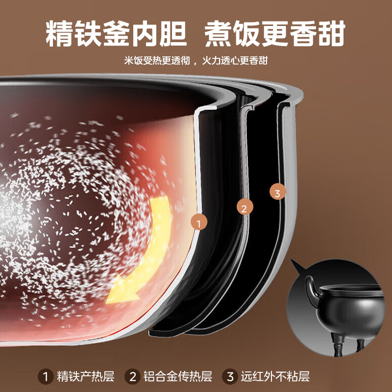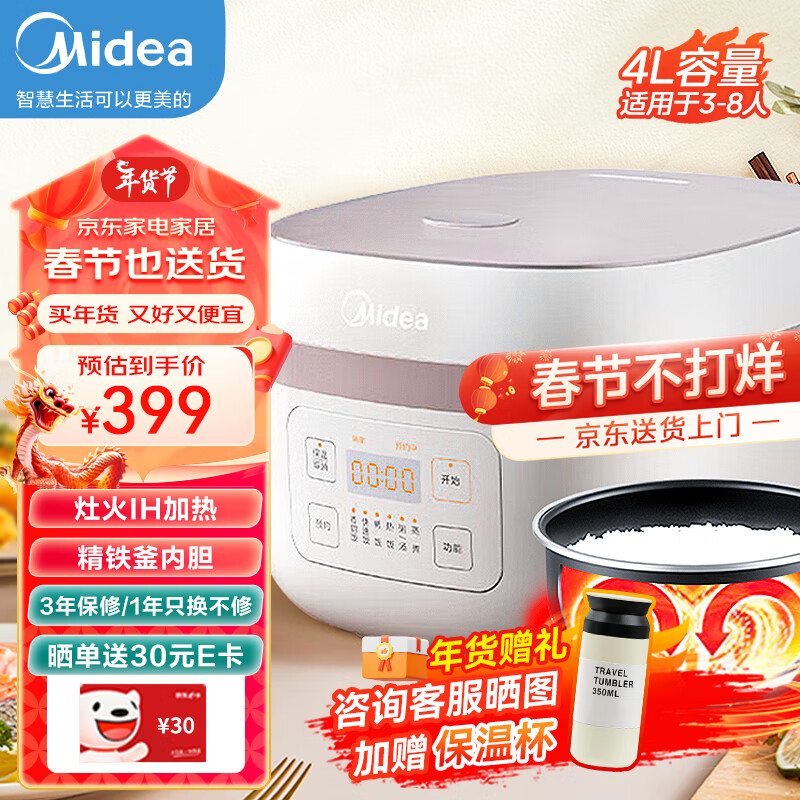 美的电饭煲电饭锅 4升IH电磁加热 3-8人适用全智能精铁釜内胆一键可拆盖板24小时预约 家用智能电饭煲价格:399.00元!