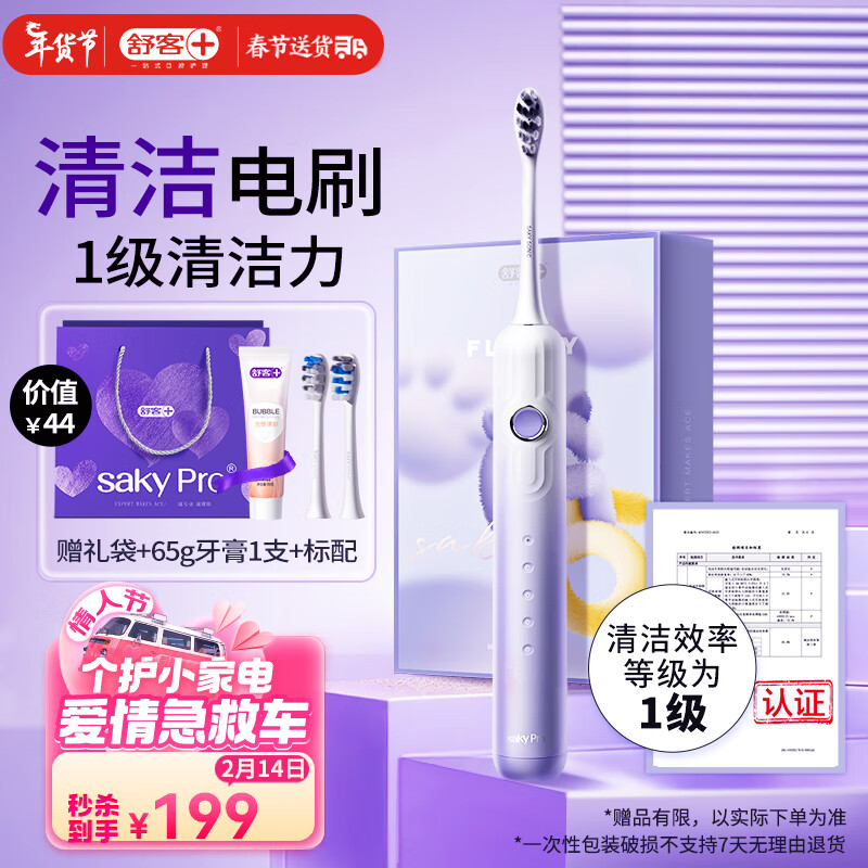 舒客情侣电动牙刷智能1级清洁成人/学生送男友/女友软毛护龈180天续航G5紫【情人节礼物】价格:229.00元!