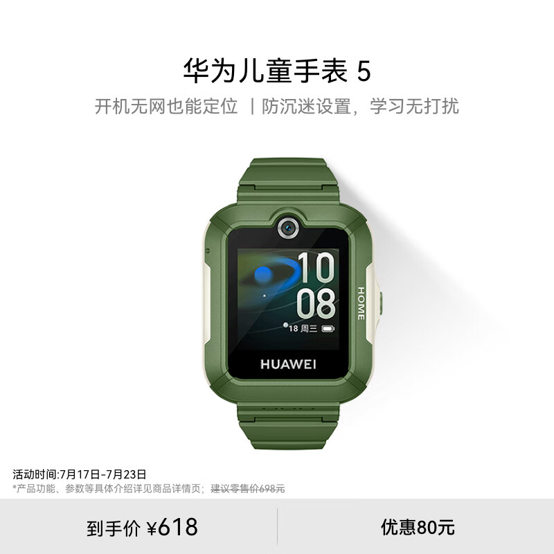 华为儿童手表 5华为手表智能手表离线定位电话原野绿 男女童价格:618.00元!