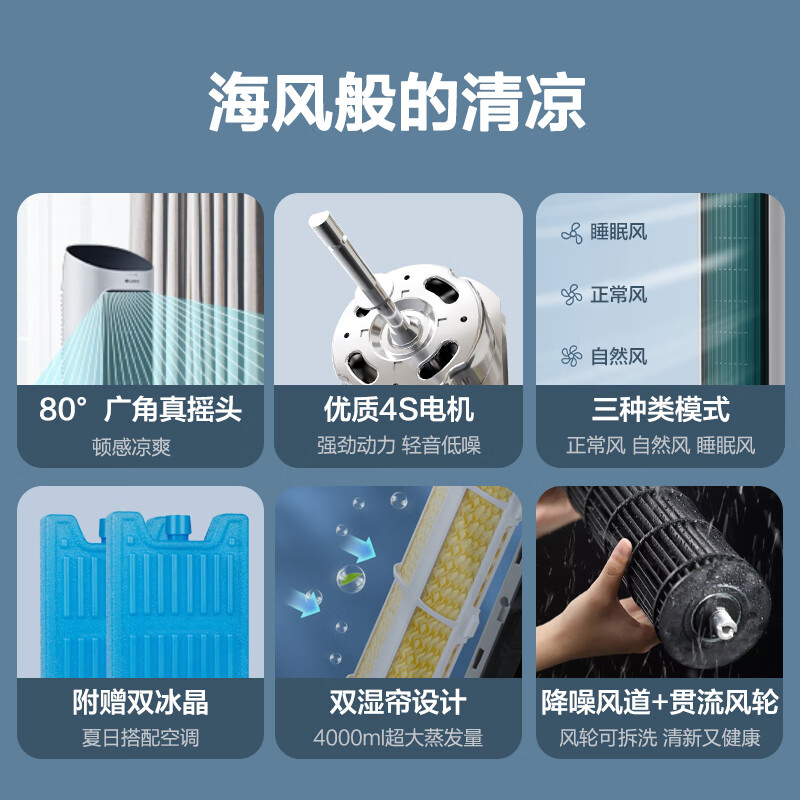 特色功能:滤网过滤,缺水保护,模拟自然风