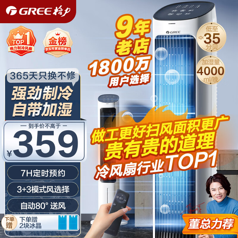 格力(GREE)【全能王】加湿制冷家用空调扇加湿冷风扇遥控落地冷风机水冷塔扇制冷小空调 KS-04X61Dg价格:389.00元!
