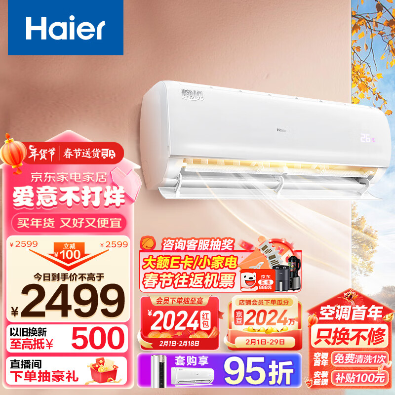 海尔(Haier)新一级能效 静悦 1.5匹 变频 冷暖挂式空调挂机 智能 自清洁 KFR-35GW/01KBB81U1 以旧换新价格:2499.00元!