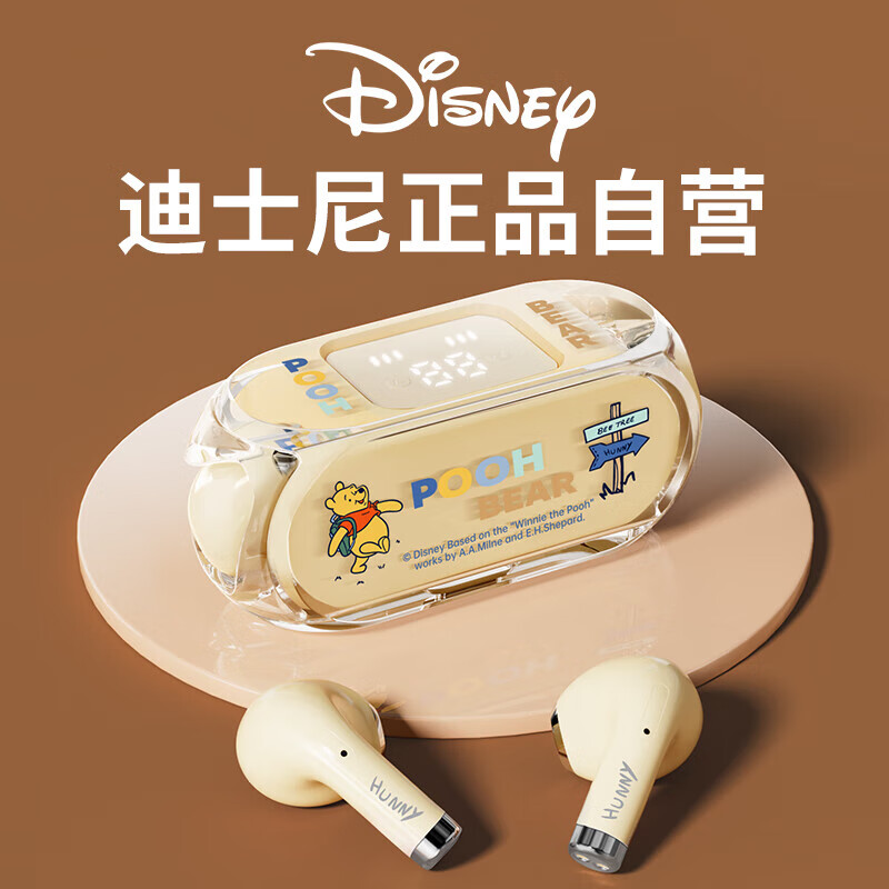 迪士尼(DISNEY)J13蓝牙耳机透明真无线半入耳式运动跑步LED数显音乐降噪游戏情侣礼物适用华为苹果【米色维尼】价格:46.90元!