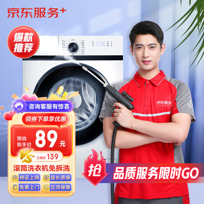 【京东服务+】滚筒洗衣机(单筒)免拆洗 家电上门清洗 清洁保养价格:129.00元!