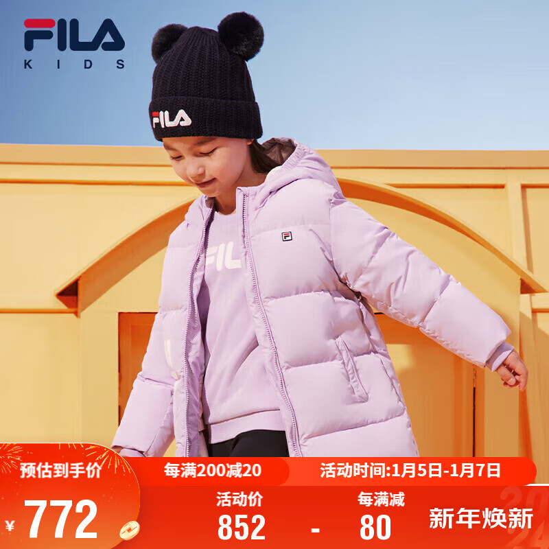 FILA斐乐童装儿童上衣外套2023秋冬男女童保暖中长款羽绒服价格:852.00元!