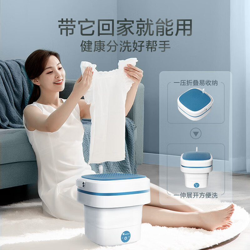 小天鹅(LittleSwan)迷你折叠洗衣机 便携式小型洗宝宝衣物袜子内衣内裤神器 租房宿舍出差专用 TZB02V71ALE价格:1299.00元!