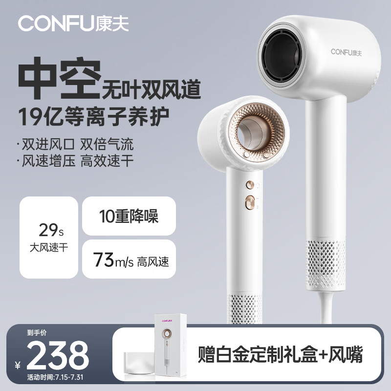 康夫(CONFU)高速电吹风机中空无叶七夕情人节生日送礼物送女友大功率大风力等离子护发吹风筒KF-F9白价格:379.00元!