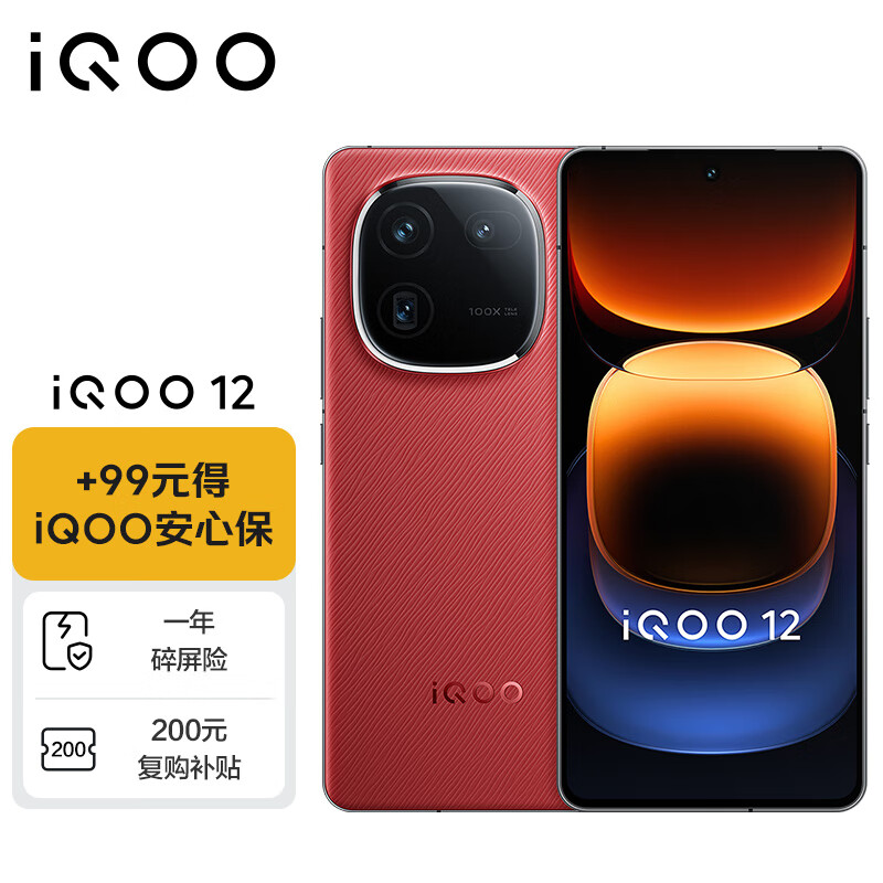vivo【iQOO安心保-碎屏套装】iQOO 12 16GB+1TB燃途版 第三代骁龙 8 自研电竞芯片Q1 5G价格:4798.00元!