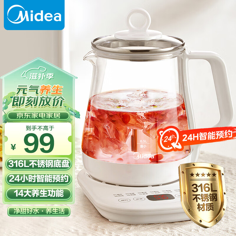 美的(Midea)养生壶 1.5L煮茶壶 24小时预约烧水壶12小时恒温11档控温 母婴316L材质电热水壶煮茶器MK-YSP1508价格:99.00元!