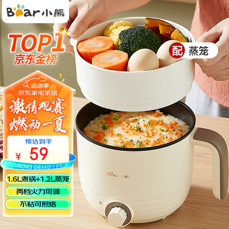 小熊(Bear)电煮锅 多用途多功能电热锅 学生宿舍泡面火锅小电锅 蒸煮一体蒸屉电蒸锅 DRG-E12L3价格:65.00元!