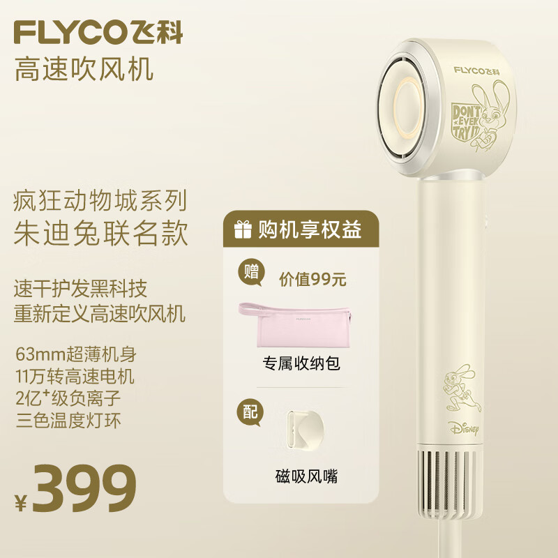 飞科(FLYCO)高速电吹风机节日礼物送女友新年低噪速干负离子护发家用宿舍用吹风筒FH6372朱迪兔联名价格:559.00元!