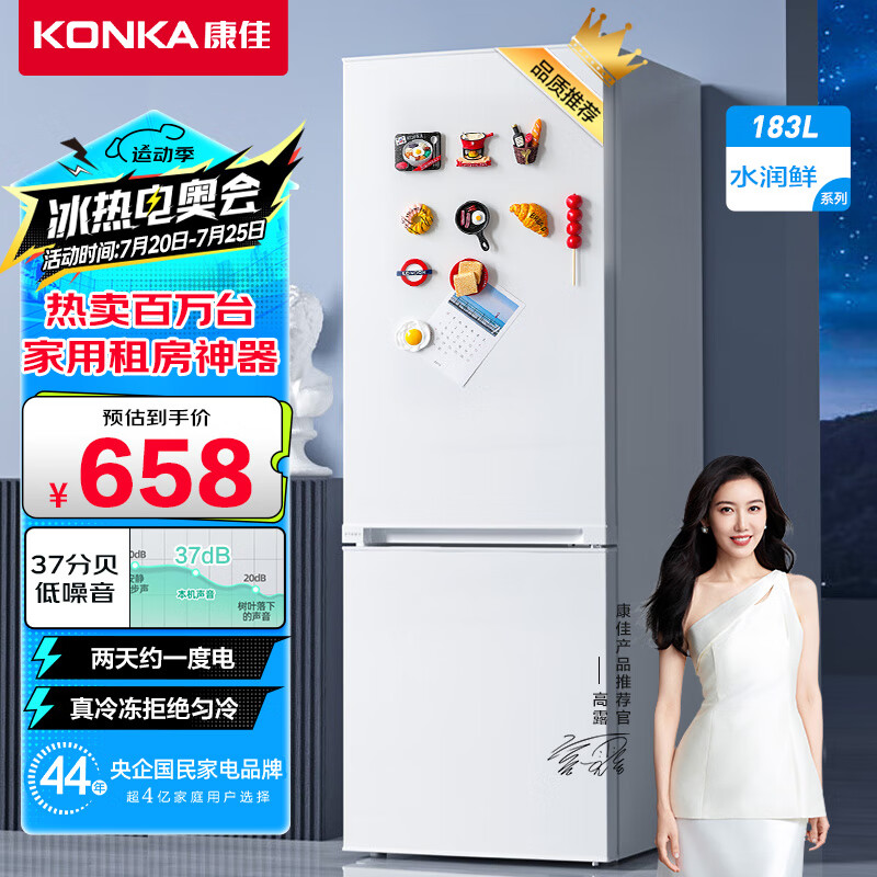 康佳183升小冰箱小型家用出租房办公室宿舍双开门两门双门二门电冰箱节能省电低音白色BCD-183GB2SU价格:699.00元!