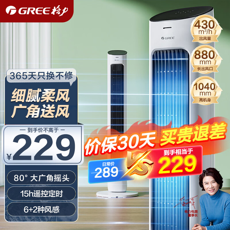 格力(GREE)【风柔音轻】定时塔扇家用节能电风扇远柔风无叶风扇摇头落地扇母婴扇遥控塔扇 FL-08X61Bg价格:249.00元!