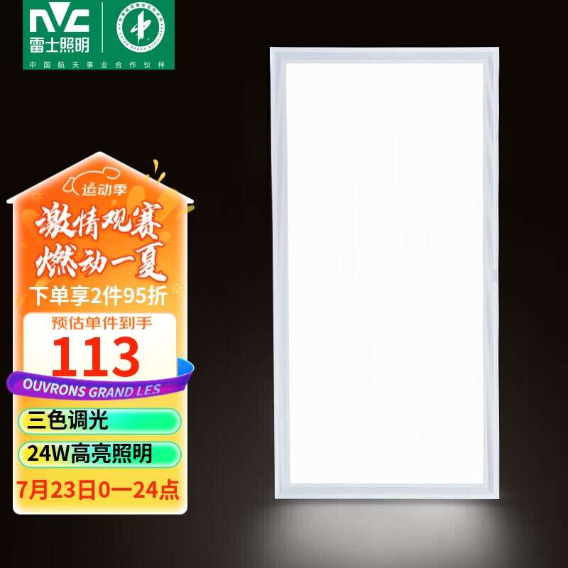 雷士(NVC)厨房灯 led集成吊顶厨卫灯吸顶灯 铝扣板卫生间平板灯 三色面板灯价格:119.00元!