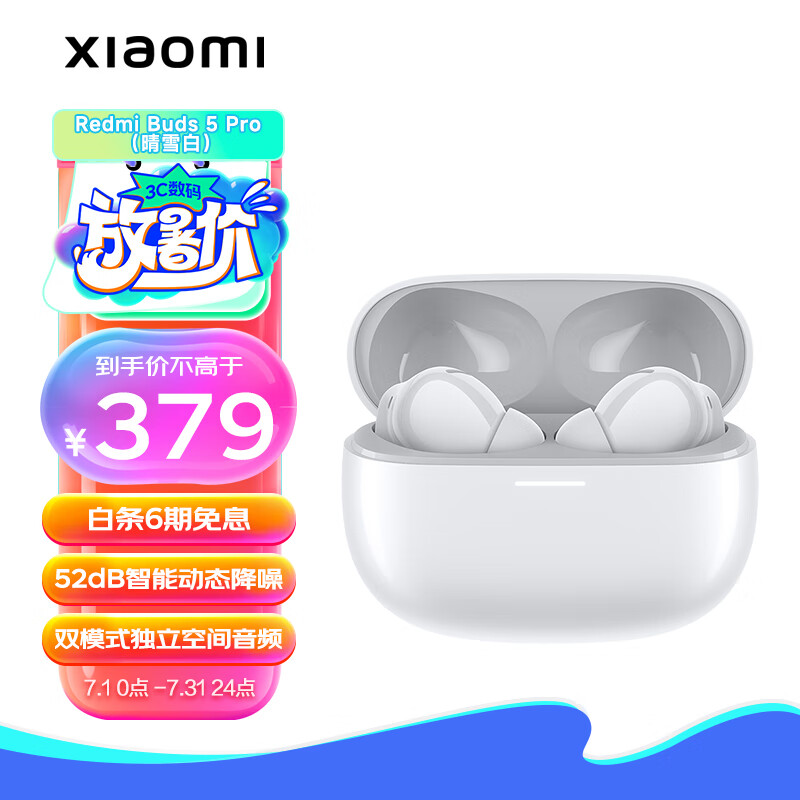 小米(MI)Redmi Buds 5 Pro 真无线降噪耳机 入耳式舒适佩戴 小米华为苹果手机通用(晴雪白)价格:379.00元!