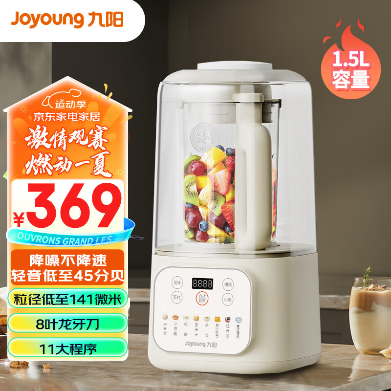 九阳(Joyoung)1.5升低音破壁机家用豆浆机 轻音45分贝 降噪榨汁机料理机 破壁机L15-P688价格:369.00元!