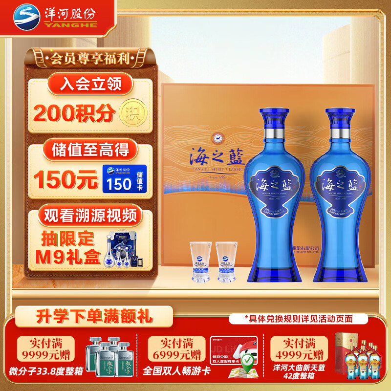洋河 海之蓝 绵柔浓香型白酒 42度 480ml*2瓶 礼盒装价格:338.00元!