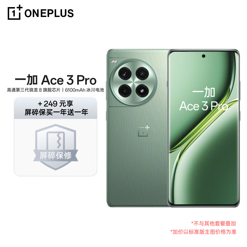 一加 Ace 3 Pro 16GB+512GB 绿野素青 第三代骁龙 8 旗舰芯片 6100mAh 冰川电池 AI智能游戏手机价格:4048.00元!