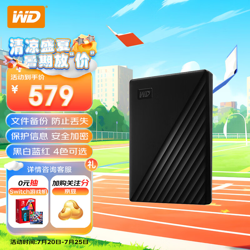 西部数据(WD)2TB 移动硬盘 USB3.0 My Passport随行版2.5英寸 黑 机械硬盘 手机笔记本电脑外接 加密兼容Mac价格:579.00元!
