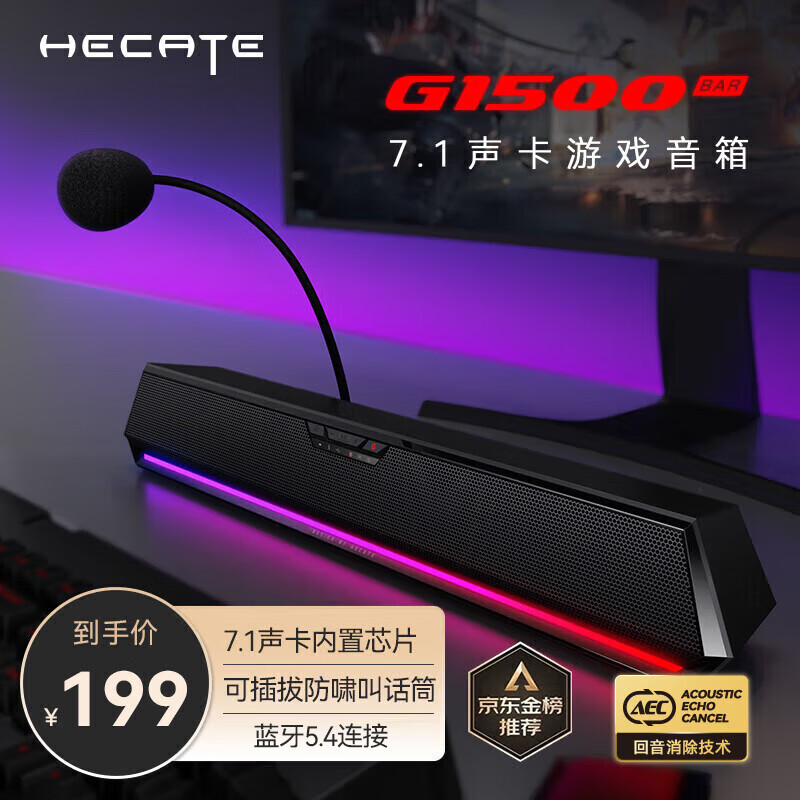 漫步者(EDIFIER)HECATE G1500bar 7.1音效电竞桌面游戏音箱防啸叫话筒蓝牙5.4电脑多媒体家用台式机笔记本音响黑色价格:229.00元!