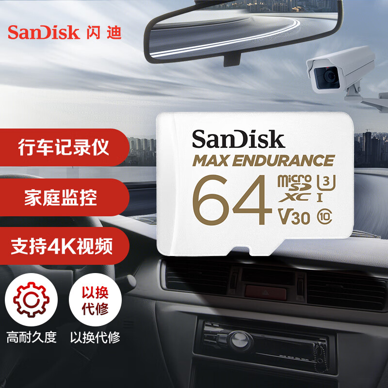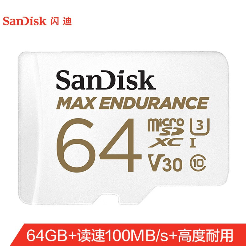 闪迪(SanDisk)64GB TF(MicroSD)内存卡 4K V30 U3 适用于家庭监控及行车记录仪内存卡 坚固耐用 更久录制时长价格:109.00元!