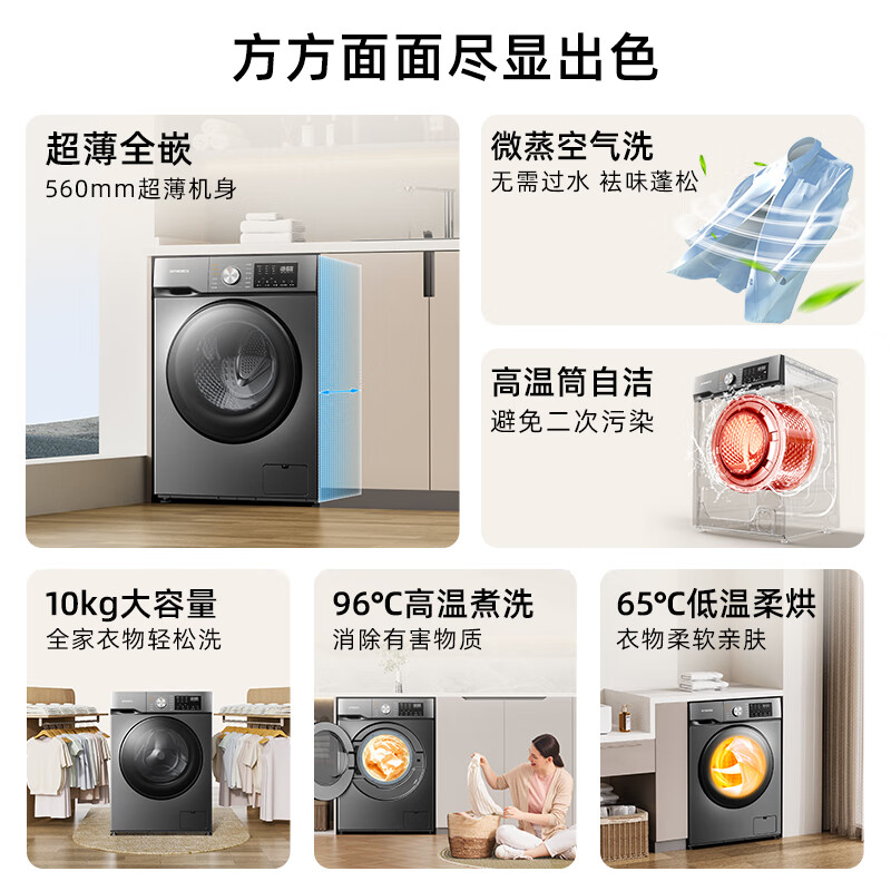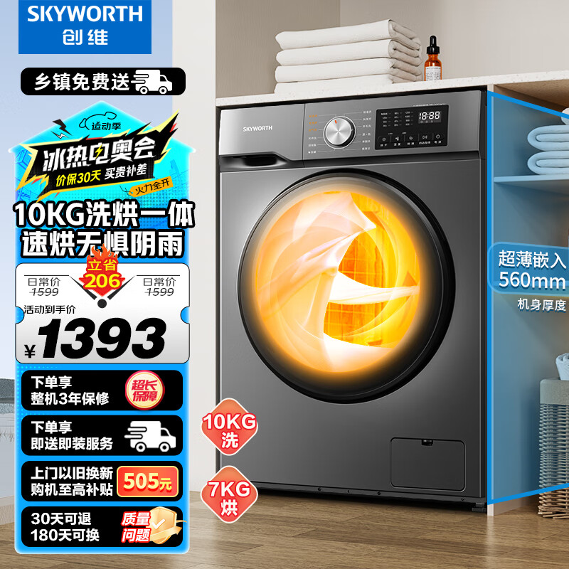 创维10公斤大容量滚筒洗衣机全自动 洗烘一体机 超薄嵌入 空气洗 除菌除螨 XQG100-B26RBH(E)价格:1399.00元!