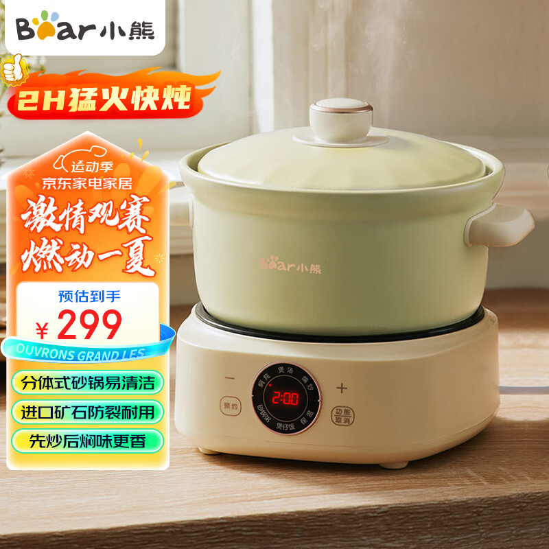 小熊(Bear)电砂锅 电炖锅 煲汤锅 炖汤锅 电炖盅 焖炖锅 养生煮粥锅煲仔饭快炖分体式电砂锅DSG-D30S1 3L价格:299.00元!