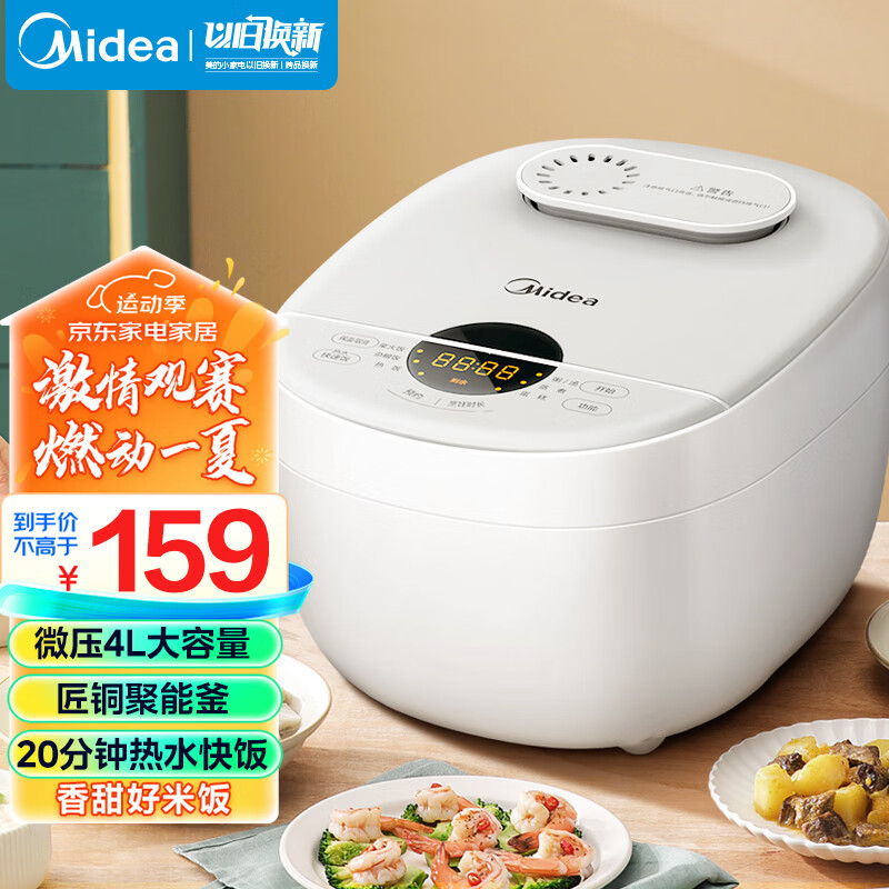 美的(Midea)智能电饭煲电饭锅家用4L预约匠铜聚能釜内胆快速饭蒸煮米饭锅FB40E108(3-8人)价格:159.00元!