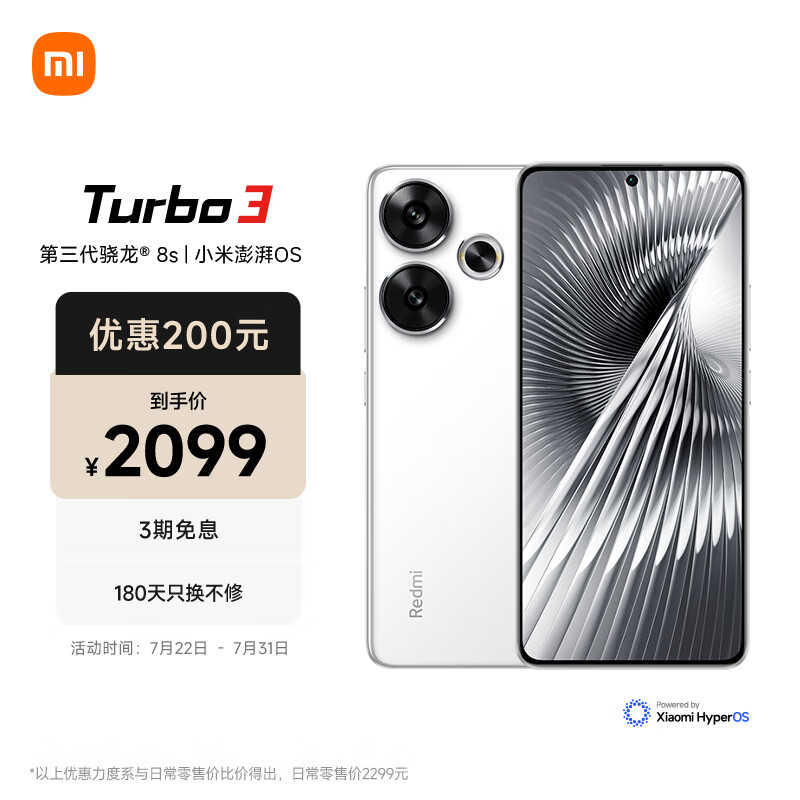 小米(MI)Redmi Turbo3 第三代骁龙8s 小米澎湃OS 12+512 白色 AI功能 红米5G手机价格:2099.00元!