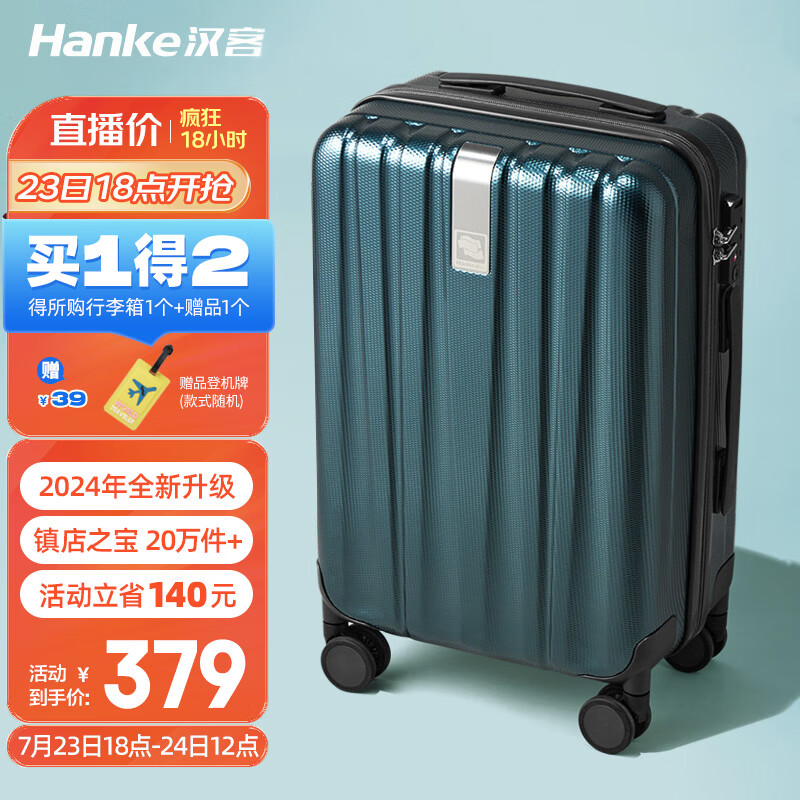 汉客行李箱男拉杆箱女旅行箱60多升大容量24英寸墨绿色密码箱再次升级价格:519.00元!