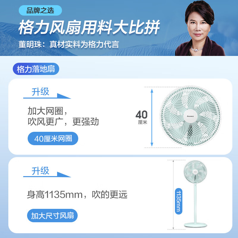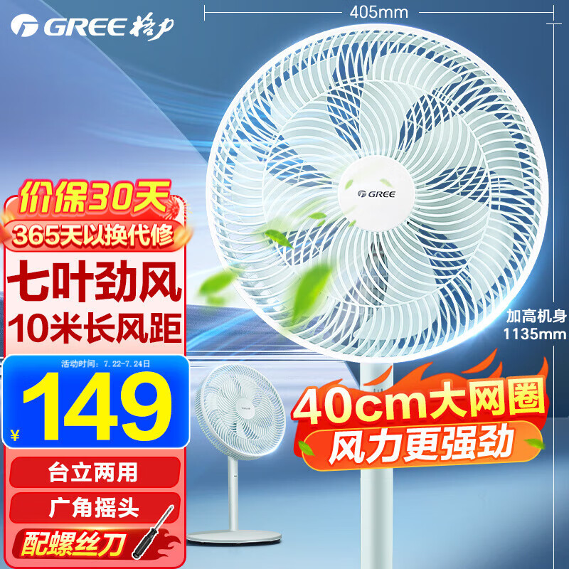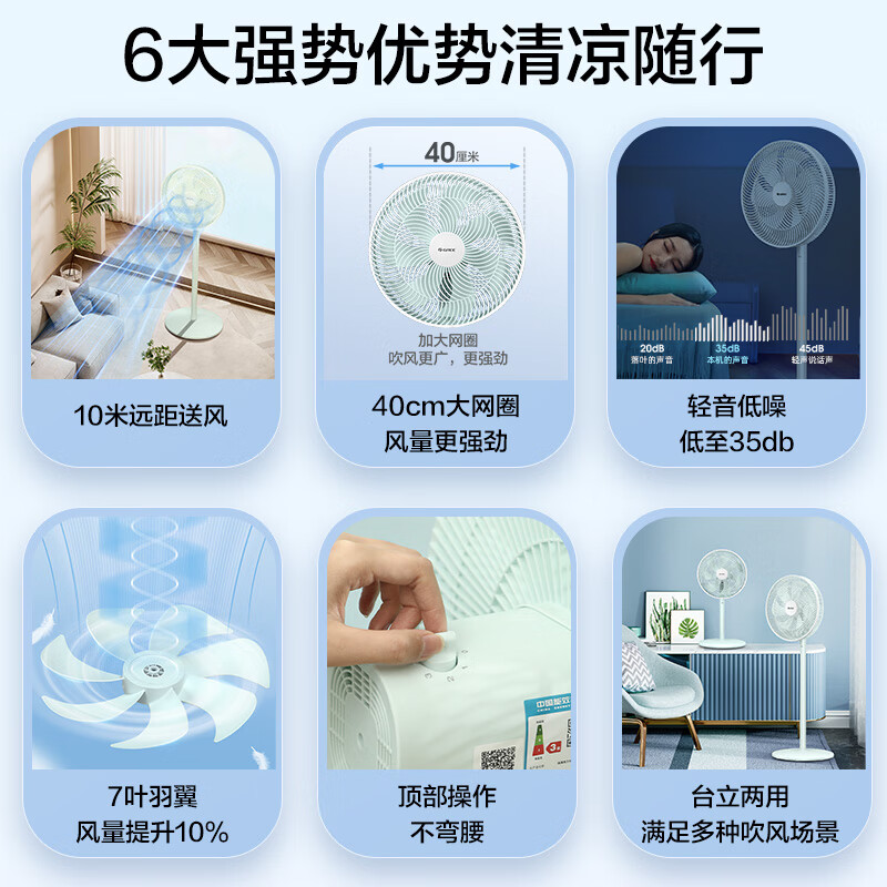 格力(GREE)电风扇家用节能落地扇学生立式大风量客厅宿舍机械轻音电扇 七叶竹浅绿+青色机械款FD-35X65h7价格:147.00元!
