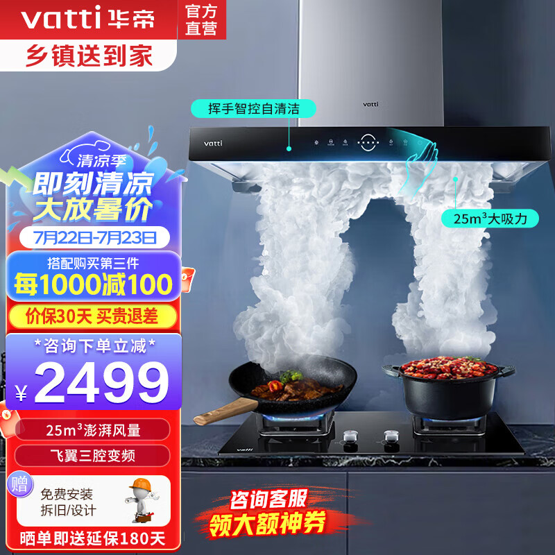 华帝(VATTI)欧式抽油烟机官方i11217耀世S10三腔家用变频油烟机25立方大风量900Pa静压自清洗挥手智控抽油烟烟 i11217 单烟机价格:2799.00元!
