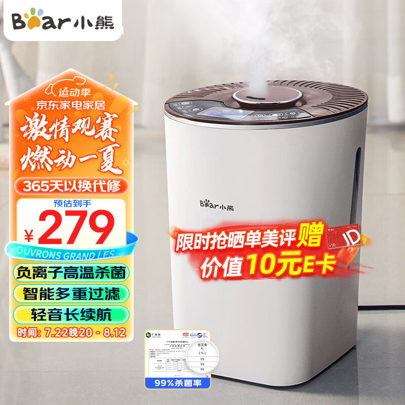 小熊(Bear)加湿器卧室婴儿 家用办公室迷你空气加湿器大雾量低噪桌面 高温除菌 4升 空调伴侣 JSQ-C40N3价格:279.00元!