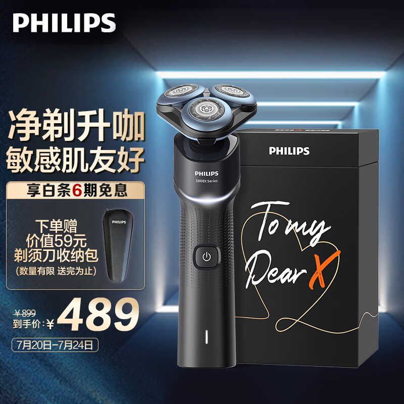 飞利浦(PHILIPS)电动剃须刀5X 炫光黑告白礼盒 SkinEase肌肤感应科技智能舒缓刮胡刀送男友 送老公七夕情人节礼物价格:489.00元!