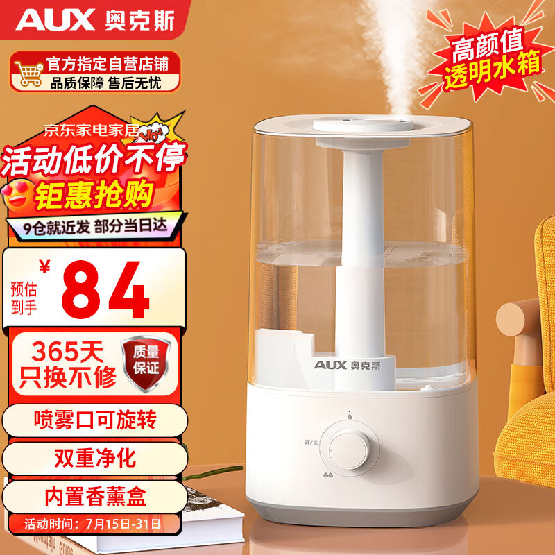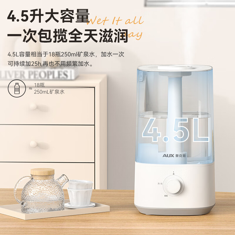 奥克斯(AUX)加湿器大容量上加水家用办公室卧室母婴空气净化加湿价格:85.00元!