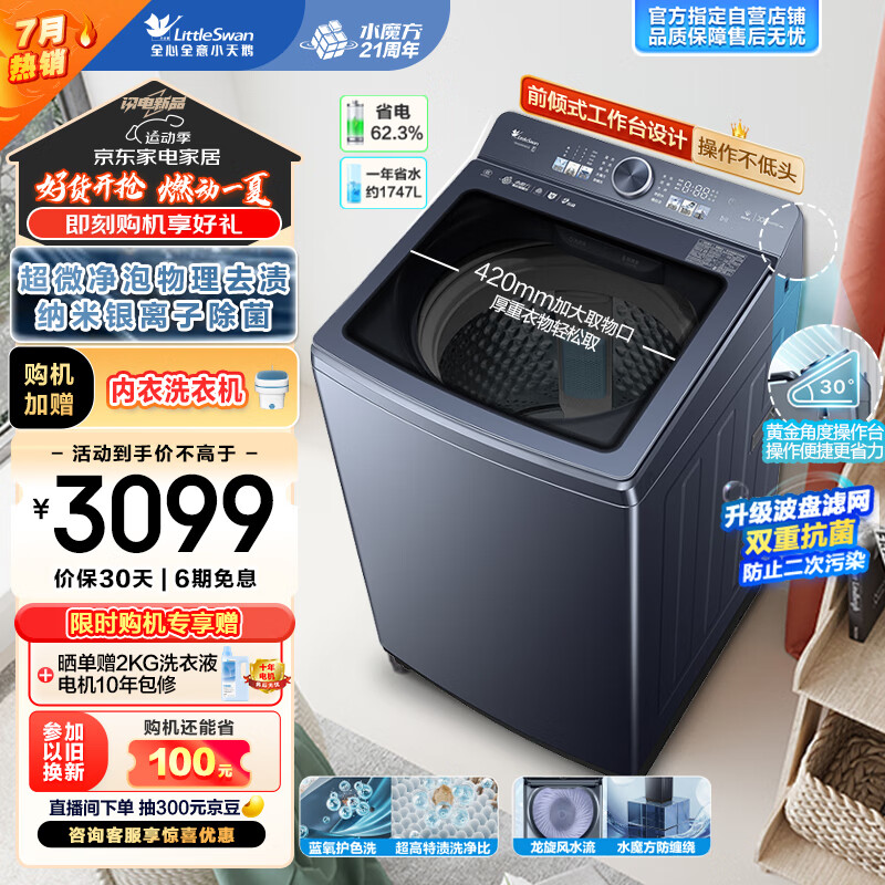 小天鹅(LittleSwan)波轮洗衣机全自动 超微净泡水魔方 本色【TB100M092DZ】物理去渍防缠绕 纳米银除菌 炫彩屏10公斤价格:3099.00元!